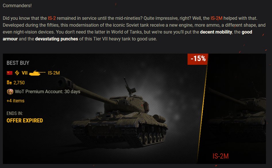 Same for me too, offer expired. Thanks Wargaming, today you saved me some money!