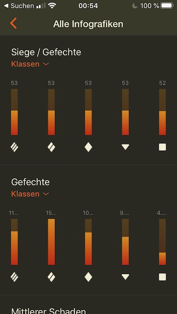 Vielen Dank für das gelungene Update. Chat-Funktionen finde ich sehr hilfreich, wenn man mal nicht am PC sitzt. Für die Zukunft wäre eine individuell anpassbare Profilseite aus meiner Sicht sehr sinnvoll, da wahrscheinlich doch viel Spieler eigene Vorstellungen von den Prioritäten der Einstellungen haben. Was bei mir nicht funktioniert (IOS13.2, aber auch schon vorher), sind die verschiedenen Zeitleisten-Einstellungen in der Chronik. Es lässt sich lediglich die erste, wenig aussagekräftige Gesamtübersicht aufrufen. Die grafische Darstellung und die Tagesübersichten blinken nur kurz auf und verschwinden gleich wieder. Weiß jemand, ob das ein bekanntes Problem ist oder Einstellungssache??